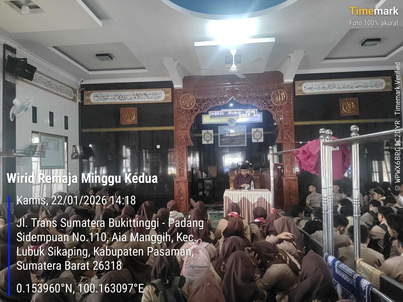 SMAN 2 Lubuk Sikaping melaksanakan kegiatan Wirid Remaja bagi siswa kelas XII pada Kamis, 22 Januari 2026, bertempat di Masjid Al-Kautsar Sawah Panjang. Kegiatan dimulai pukul 13.30 WIB hingga selesai dan diikuti dengan penuh khidmat oleh seluruh peserta.